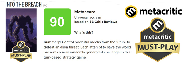 Into the Breach یک بازی در ژانر استراتژیک نوبتی و تاکتیکی (Turn-Based, Strategy, Tactical) است؛ این بازیِ ارزشمند، بسیار موردتوجه گیمران علاقهمند به این ژانر بازیها قرار گرفته و از جانب منتقدان مختلف بازیهای کامپیوتری نیز بسیار تحسینشده است. Into the Breach امتیازات بسیار بالایی را منتقدان مراجع معتبر بررسی بازیها دریافت کرده است و یکی از بهترین بازیهای سال در این ژانر محسوب میشود. این بازی، محصولی دیگر از سازندگان بازی معروف و پُرامتیاز FTL: Faster Than Light است. دوران بازی، آیندهای بسیار دور است؛ سیارهٔ زمین، از موجودات غولپیکر بسیار شرور و خطرناک فضایی پُر شده و تنها راه نجات انسانها، نبردی همتراز و تماماً مسلحانه با آنهاست. محیط اولیه در بازی، بهصورت تصادفی ایجاد میشود و قدم به قدم با چالشهای به وجود آمده – به قصد غلبهٔ قاطعانه بر آنها – همراه خواهید شد. برای غلبهٔ همهجانبه بر دشمنان، خودتان نیز باید از رباتهای جنگی بزرگ و قدرتمند استفاده کنید، که این نیز خود چالشی بزرگ و گسترده است. گیمپلی بازی Into the Breach برخلاف حجم کم آن، بسیار وسیع و پُرمایه است. از جمله فعالیتهای مهم در بازی، میتوان به استفاده از سازهها برای تأمین نیروی رباتهای جنگی خود، جابهجایی در زمان، پیدا کردن سلاحهای قدرتمند جدید همچنین بهرهگیری از خلبانان فوقالعاده ماهر اشاره کرد.ة