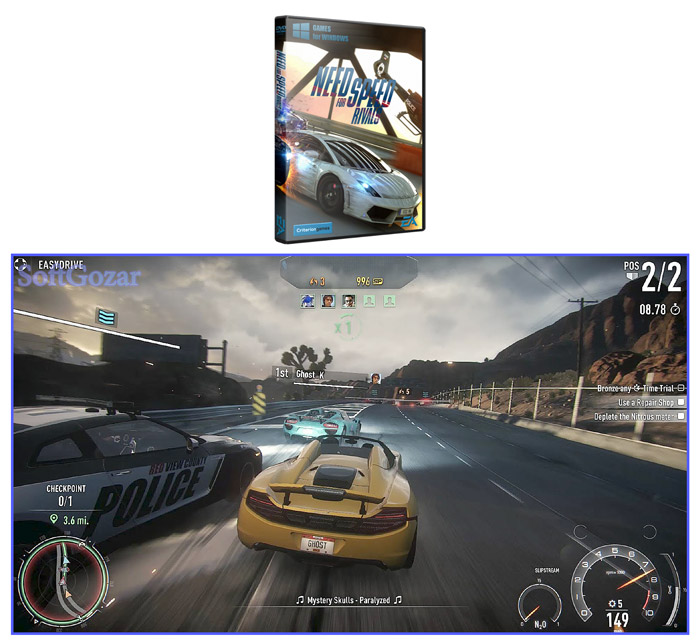 پوستر بازی نید فور اسپید ریوالز اطلاعات بازی: نسخهی Reloaded تاریخ انتشار : نوامبر 2013 امتیاز (از 10 ، بر اساس امتیازدِهی سایت های معتبر) : 8.0 (عالی) رده بندی سِنّی ESRB : گروه سنیE +10 (بالای 10 سال) ویژگی های بازی : - از برترین و بهترین بازیهای ژانر Racing - گیمپلی انتخابیِ جذاب با جزئیات و رخدادهای هیجانانگیز و متنوع توضیحات بازی Need for Speed: Rivals (قبل از هر چیز لازم است این نکتهی مهم را ذکر کنیم که مدتها بود کرک و نسخهی سالم و مورد اعتمادی از این بازی منتشر نشده و تمامی نسخههای موجود، سرشار از اِشکال و باگ بودند؛ تا اینکه خوشبختانه گروه معتبر Reloaded نسخه و کرک سالم این بازی را منتشر کرد که سافتگذر بیدرنگ آن را در اختیار شما قرار میدهد.) سری بازیهای Need For Speed که به عنوان برترین بازیها با محوریت اتومبیلرانی و ژانر Racing شناخته میشوند در نسخهی پیشین خود (Most Wanted) مشکلات و ضعفهایی بهمراه داشت که در این نسخه، که با نام رسمی Need for Speed: Rivals منتشر شده به نسبت زیادی برطرف شدهاند. گیمپلی این نسخه تغییرات زیادی داشته بدین صورت که در ابتدای بازی، باید ماهیت و هویت خود را از بین دو گروه "پلیس" و "مجرم" انتخاب کنید. روند بازی به صورت ملموسی سختتر اما بسیار هیجانآورتر شده و انگیزهی گیمر را برای به اتمام رساندن کلیهی مراحل بازی تقویت میکند. پس از به پایان بردن هر مرحله که شامل جزئیات و حواشی متنوعی است، یک اتومبیل بهتر و قویتر قابل دستیابی میشود؛ بطور کلی سازندگان Need for Speed: Rivals اتومبیلهای کمی را در گیمپلی قرار دادهاند و به نوعی -نسبت به بازیهای مشابه- کمبودی گلایهآور محسوب میشود که البته در سری Need for Speed بیسابقه نیست. این بازی با موتور گرافیکی Frostbite 3 ساخته شده که فریمها و تکسچرها را با به نسبت قدرت کارت گرافیک نمایان میکند و بطور کلی جلوههای تصویری متناسبی را ارائه داه است. لیست اتومبیلهای قابل دستیابی در گیمپلی: Nissan GT-R Black Edition Koenigsegg Agera R Ferrari f12berlinetta Lexus LFA Audi R8 Coupe V10 plus 5.2 FSI quattro BMW M3 GTS Bentley Continental GT V8 BMW M6 Coupe Ford GT Ford Mustang GT Ford Shelby GT500 Mercedes-Benz C 63 AMG Coupe Black Series Mercedes-Benz SLS AMG Coupe Black Series Pagani Huayra Hennessey Venom GT Aston Martin Vanquish Bugatti Veyron 16.4 Super Sport Chevrolet Camaro ZL1 Chevrolet Corvette Stingray Lamborghini Aventador LP 720-4 50th Anniversary Edition Marussia B2 McLaren 12C McLaren F1 LM McLaren P1 Porsche Cayman S Ferrari 458 Spider Ferrari 599 GTO Ferrari Enzo Ferrari Ferrari FF Ferrari 458 Italia (توضیحات از کارشناس بخش بازی سافت گذر: محمد زویداوی) نکات بازی : (نسخهی ارائه شده، نسخهی Reloaded میباشد؛ پس تنها کرک و آپدیتهای Reloaded را پشتیبانی خواهد کرد.) 1- قبل از نصب و کرک کردن بازی، حتماً آنتی ویروس خود را غیرفعال کنید. 2- پس از باز کردن فایلهای فشرده، فایل iso ایجاد شده را رایت و یا در درایو مجازی Mount کرده و از طریق اُتوران یا فایل OriginInstaller (با پسوند exe) بازی را نصب نمایید. 3- مانع از اتصال بازی به اینترنت شده و پس از کپی و جایگزین کردن محتویات پوشه "Crack" در پوشه محل نصب بازی، بازی را اجرا کنید. 4- در صورت تمایل آپدیت 1.4 را نیز در همان مسیری که بازی اصلی را نصب کردهاید، نصب و کرک نمایید. حداقل سیستم مورد نیاز : CPU: Intel 2.4 GHz Core 2 Duo or AMD 2.8 GHz Athlon X2 RAM: 4 GB VGA: AMD Radeon 3870 512Mb or better, NVIDIA GeForce 8800 GT 512 Mb or better, IntelHD 4000 integrated 512Mb or better DX: DirectX 10.1 OS: Windows Vista Service Pack 2 32-Bit HDD: 30 GB Recommended peripheral: Keyboard and mouse سیستم پیشنهادی: CPU: Intel Quad-Core CPU or AMD Six Core CPU RAM: 8 GB VGA: AMD Radeon 7870 3Gb or better, NVIDIA GeForce GTX660 3Gb or better DX: DirectX 11 OS: Windows 7 Service Pack 2 HDD: 30 GB
